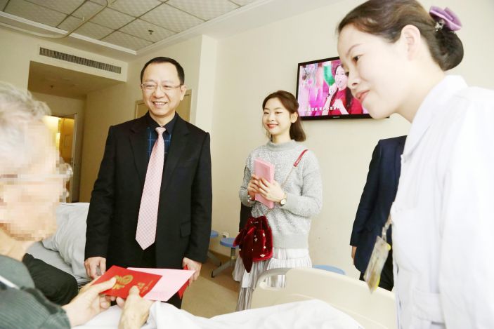 康美醫院院長邱浩強帶領副院長陳松深、副院長林東浩、護理部主任陳春燕、行政後勤李麗江和黃浩銳等同志深入病房,慰問患者,給他們帶來了新年祝福,鼓勵他們戰勝疾病争取早日康複出院,同時慰問春節期間堅守臨床一線的醫護人員,表揚他們愛崗敬業、默默奉獻的崇高精神,激勵他們繼續認真做好本職工作,爲患者的早日康複盡心盡力。