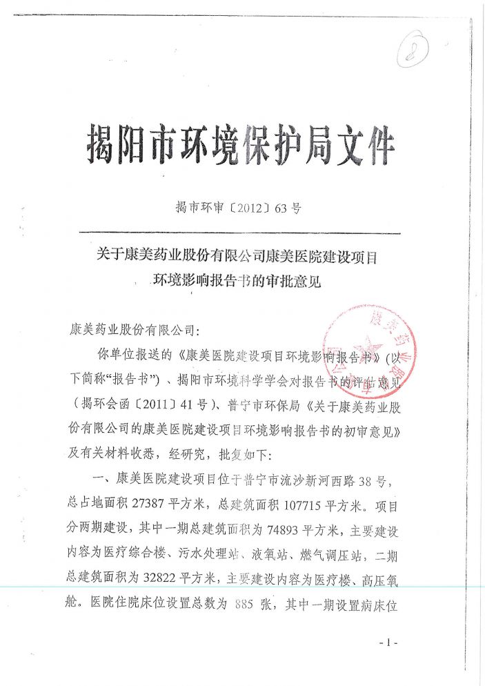 您現在的位置是:康美醫院網站 > 信息公開 > 環境監測信息 > 康美醫院環評驗收批複文件