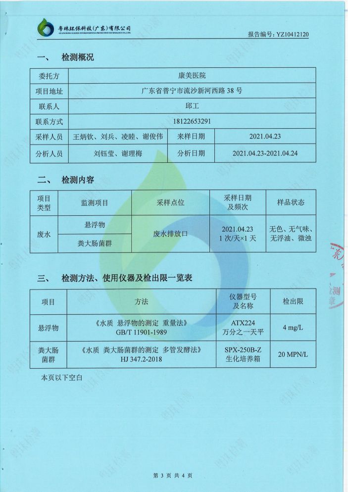您現在的位置是:康美醫院網站 > 信息公開 > 環境監測信息 > 廢水檢測報告