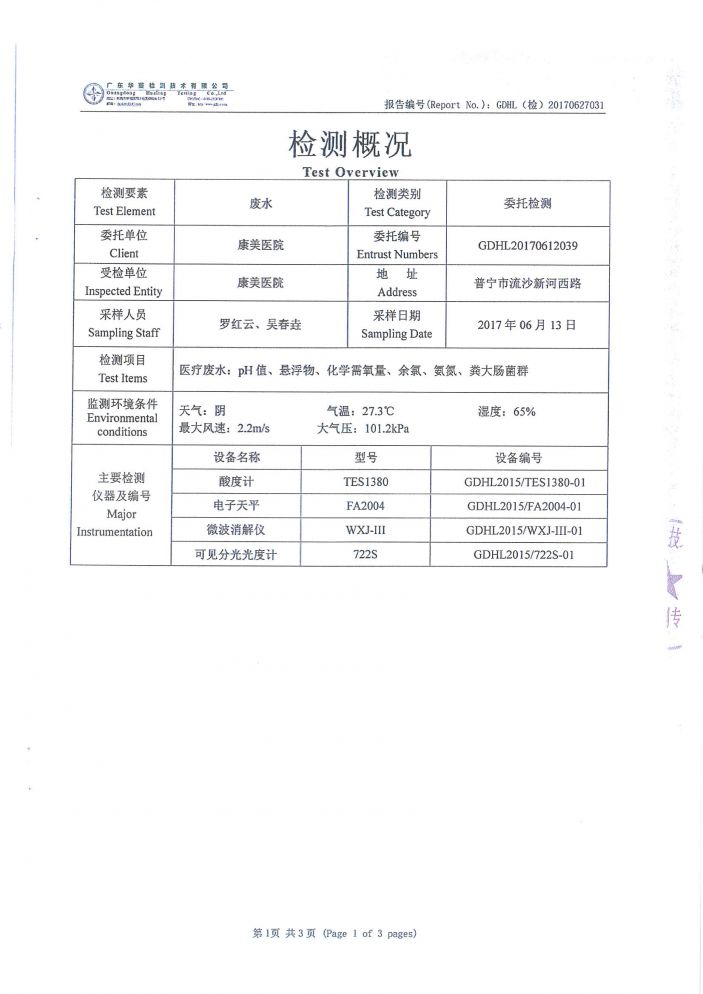 下一主題:康美醫院2017年第一季度廢水檢測報告