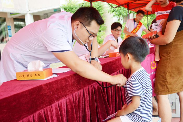 7月25日上午,康美醫院聯合普甯市紅十字會、廣東醫科大學甯夏服務隊(甯夏——普甯的夏天)及獅子會鐵山蘭服務隊,赴南溪鎮加興村開展送醫送藥義診活動。
