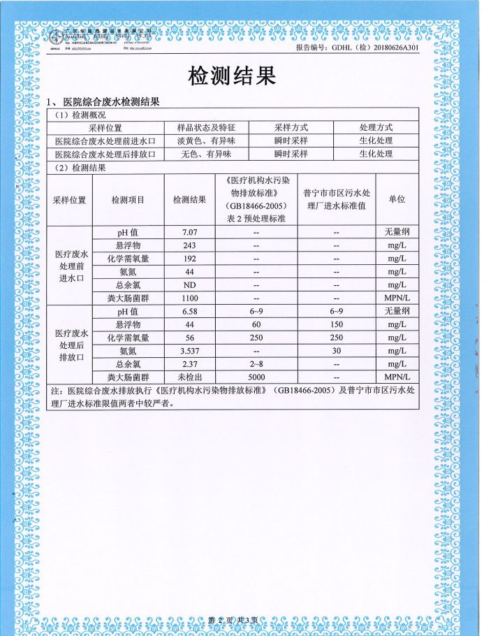 康美醫院2018年第二季度廢水檢測報告